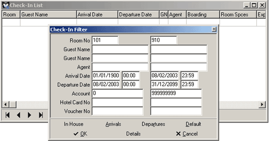 of the guests on the date the operation is done; click the Arrivals