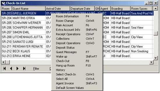 the Check-In List or selecting the Check – Out (F8) after