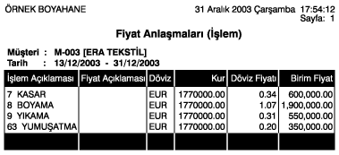 listesi yukarıdaki gibi alınabilir.Örnekte M-003 cari hesabına uygulanacak
