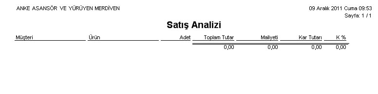 Satış Analizi Satış-Dağıtım program bölümünde Satış Noktası Raporları seçeneği altında yer alır. Satış Analizi Ekranı