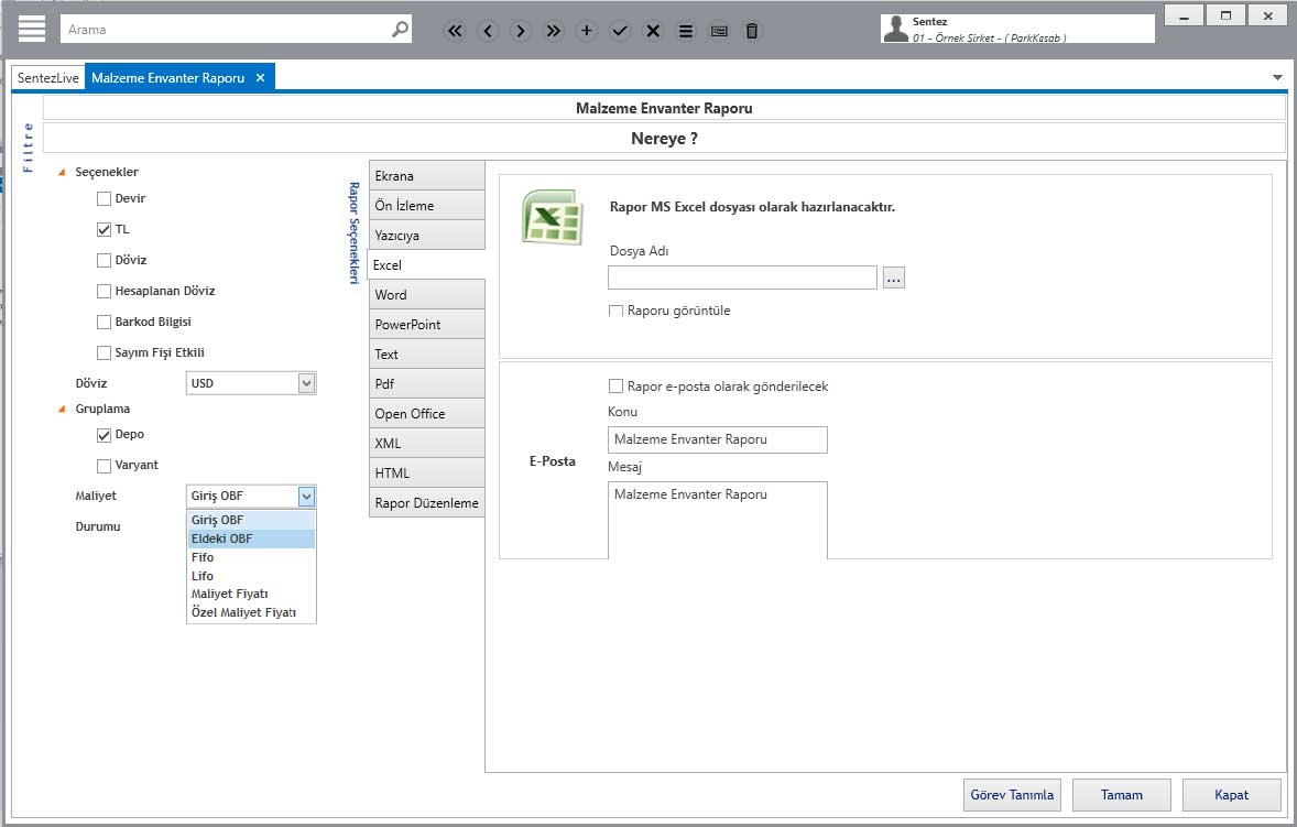 Stok maliyetlerini, Giriş-OBF, Eldeki-OBF, LIFO, FIFO maliyet türlerine göre yapabilir, istenen maliyet türü bazında raporlar alabilirsiniz.