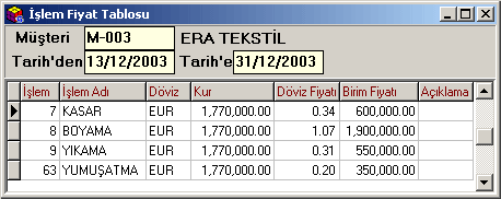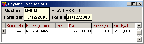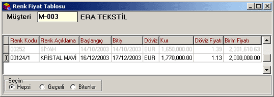 işleme göre Fiyat Anlaşmaları Listesi , Renk Fiyat Listesi alınabilir.