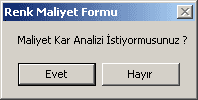 renk maliyet tablosu ekrana Kar Analizleri ile birlikte getirilir.