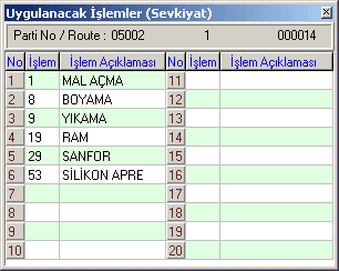 Aktar butonuna basılığında tüm parti bilgilerinin sevk fişine yansıması