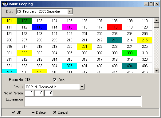 To process an operation for a room click Operation. A new window