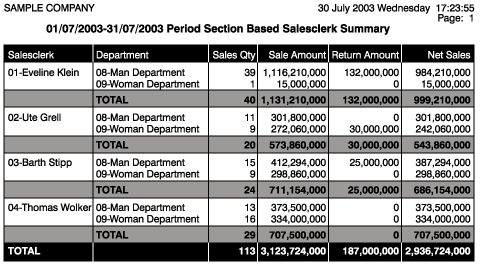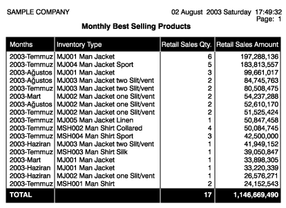 Reyon bazında ; Based on the Salesclerk Department; reports displaying the sales realized could be generated. |