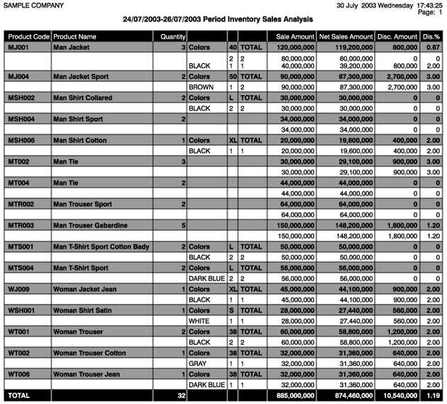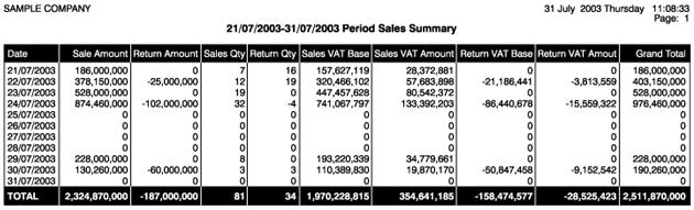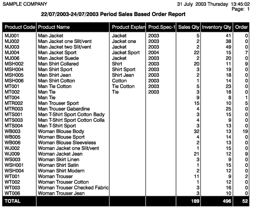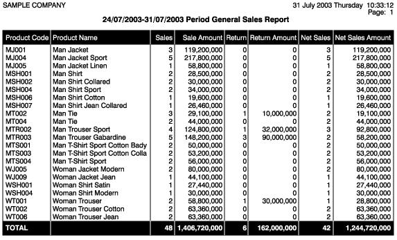 For the related period; reports that display the product quantities and sales amounts could be generated. |