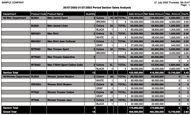 Reports that display the product quantities and sales amounts based on the department could be generated. |