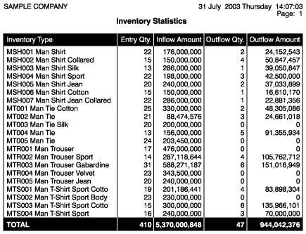 You can generate reports displaying the inventory inflow-outflow quantities and amounts. |