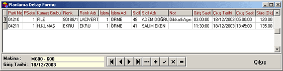 butonu ile planlama detay ekranı üzerinde iken, bir önceki güne ait kayıtlara