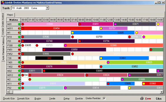 iken tarih bazında makina planlamaları görüntülenebilir. Günlük üretim
