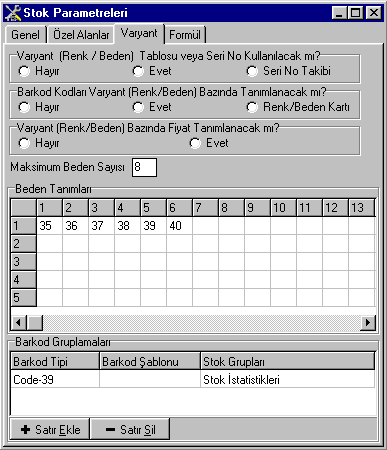 seçeneği seçilir ise, barkod kodları varyant bazında tanımlanabilir.Buna