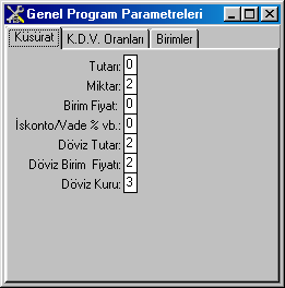 Program genelinde kullanılan küsürat haneleri bu bölümde tanımlanır.