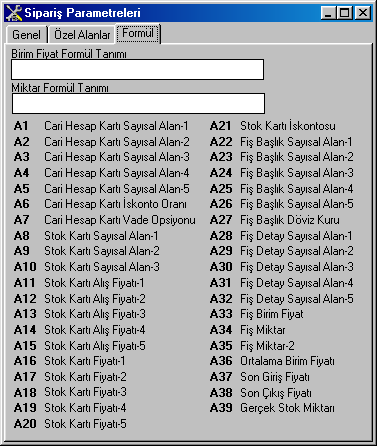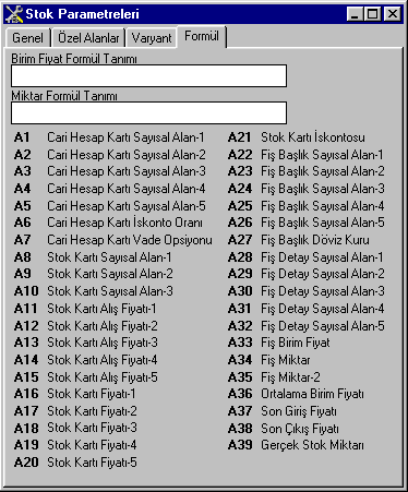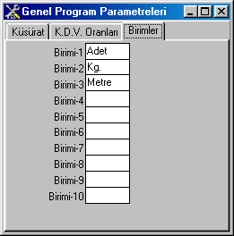 Stok takibinde kullanılan birimler bu bölümden tanımlanır. 10 değişik birim tanımlanabilir.