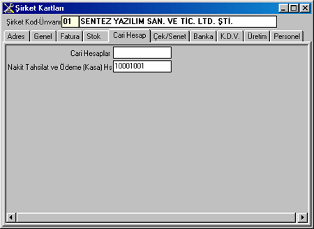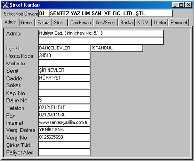 Şekil 5 Şirket Kartları / Adres Sekmesi