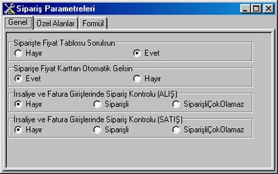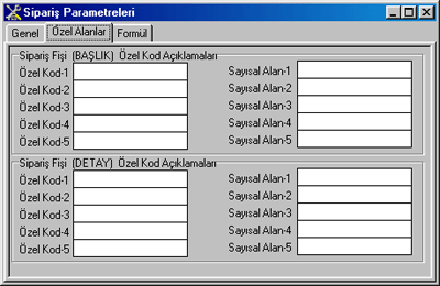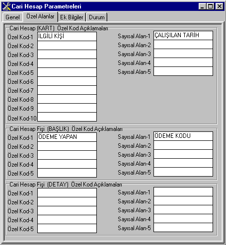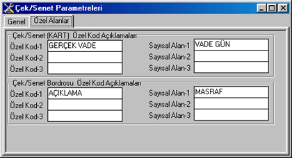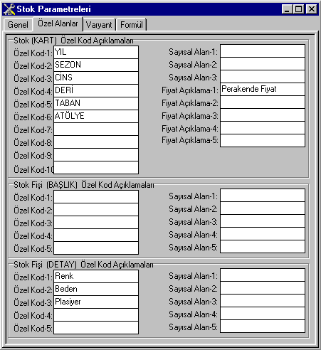 Şekil 25 Stok Parametreleri / Özel Alanlar Sekmesi