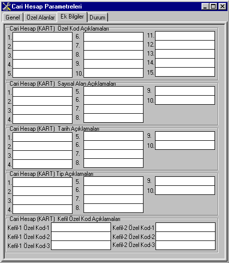 Bu bölümde Stok Kartı özel bölümünde yer alması istenilen özel alan başlıkları