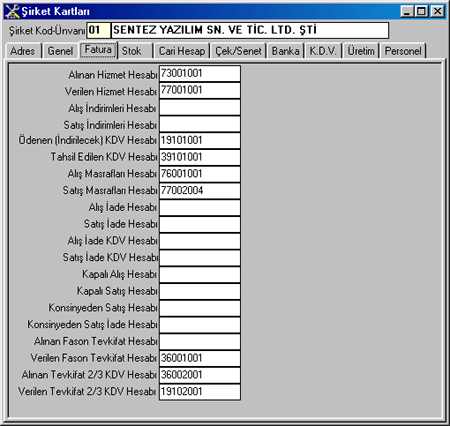 numarası gibi firma adres bilgilerinin tanımlandığı bölümdür.