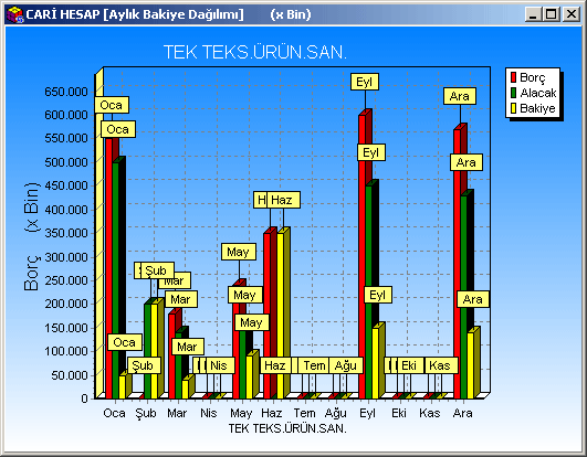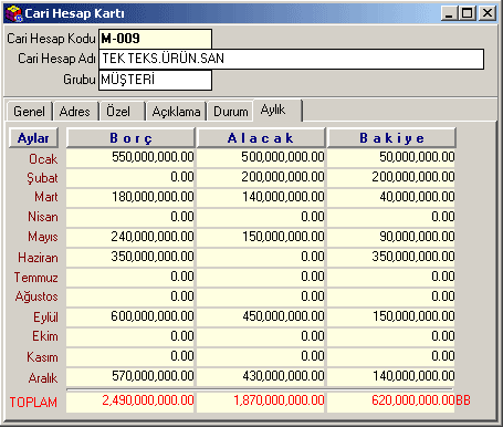 hesaba ilişkin borç/alacak tutar ve bakiyeleri ay bazında takip edilebilir.