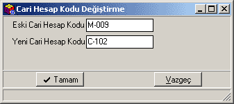 Yeni Cari Hesap Kodu alanına cari hesaba verilmek istenen yeni hesap kodu yazılır.Tamam