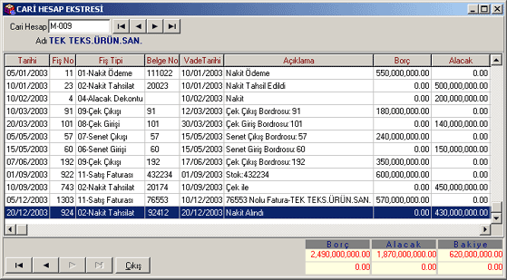 da kart üzerinden ekstresi alınabilir.Cari hesap kartı üzerinden alınan